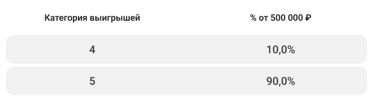 Подробнее о распределении по категориям выигрышей смотрите в таблице.