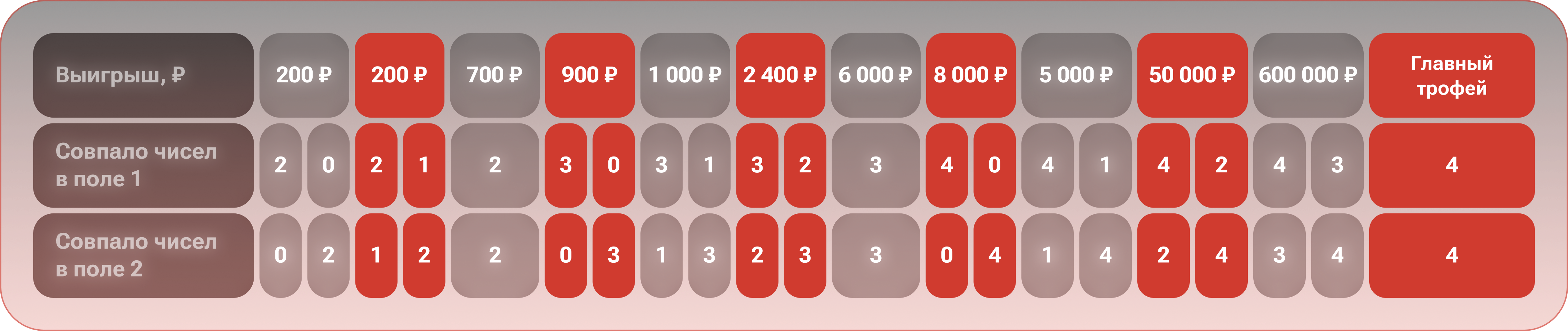 Фраза «Забирайте 600 000 ₽ за 7 угаданных чисел» указывает на увеличенный выигрыш во 2-й категории в тиражах, розыгрыш которых пройдет с 12:10 мск 26.05.2025 по 11:55 мск 02.06.2025, относительно выигрышей, действовавших в период до 11:55 мск 26.05.2025.