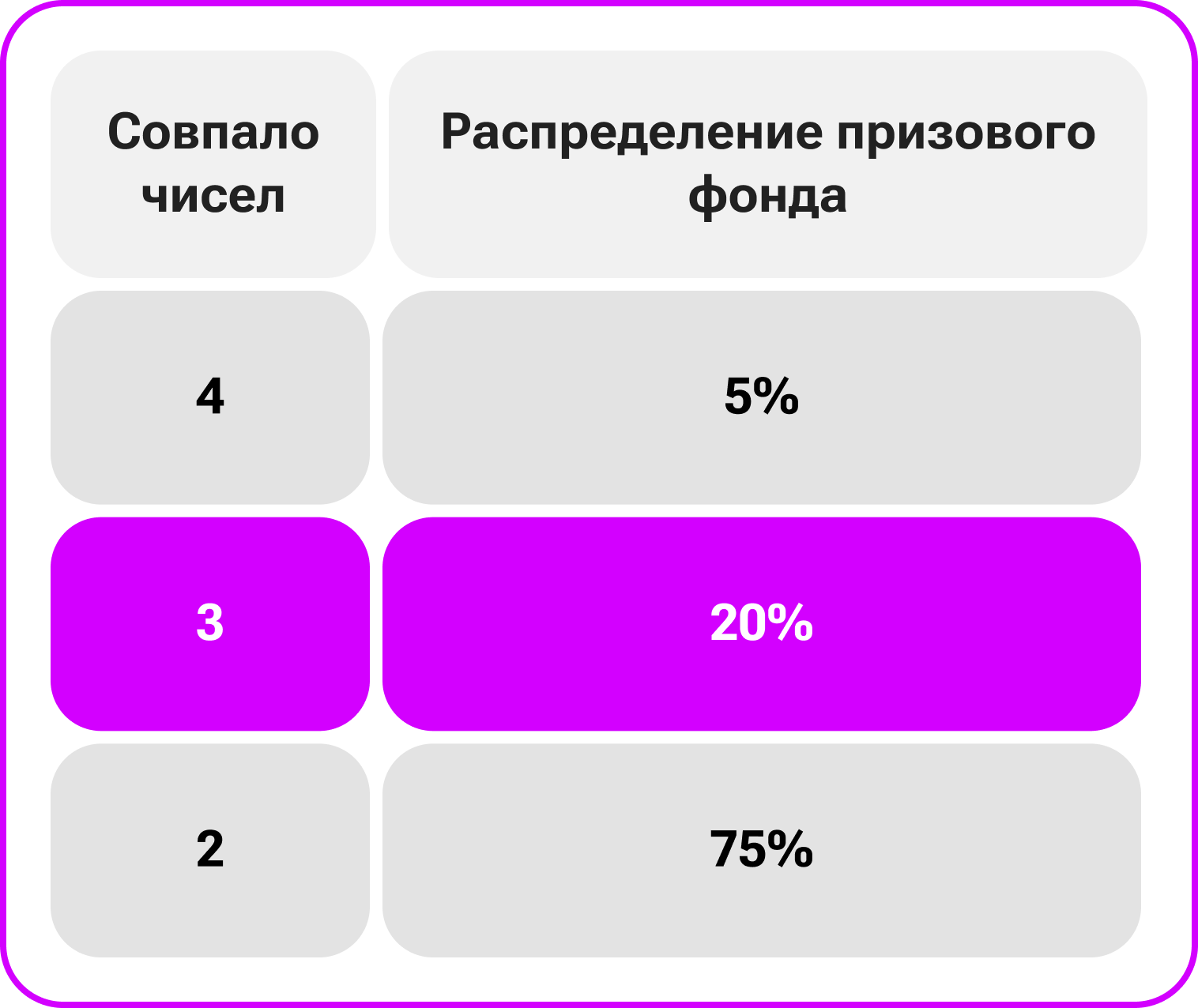 Подробнее о распределении по категориям выигрышей смотрите в таблице.