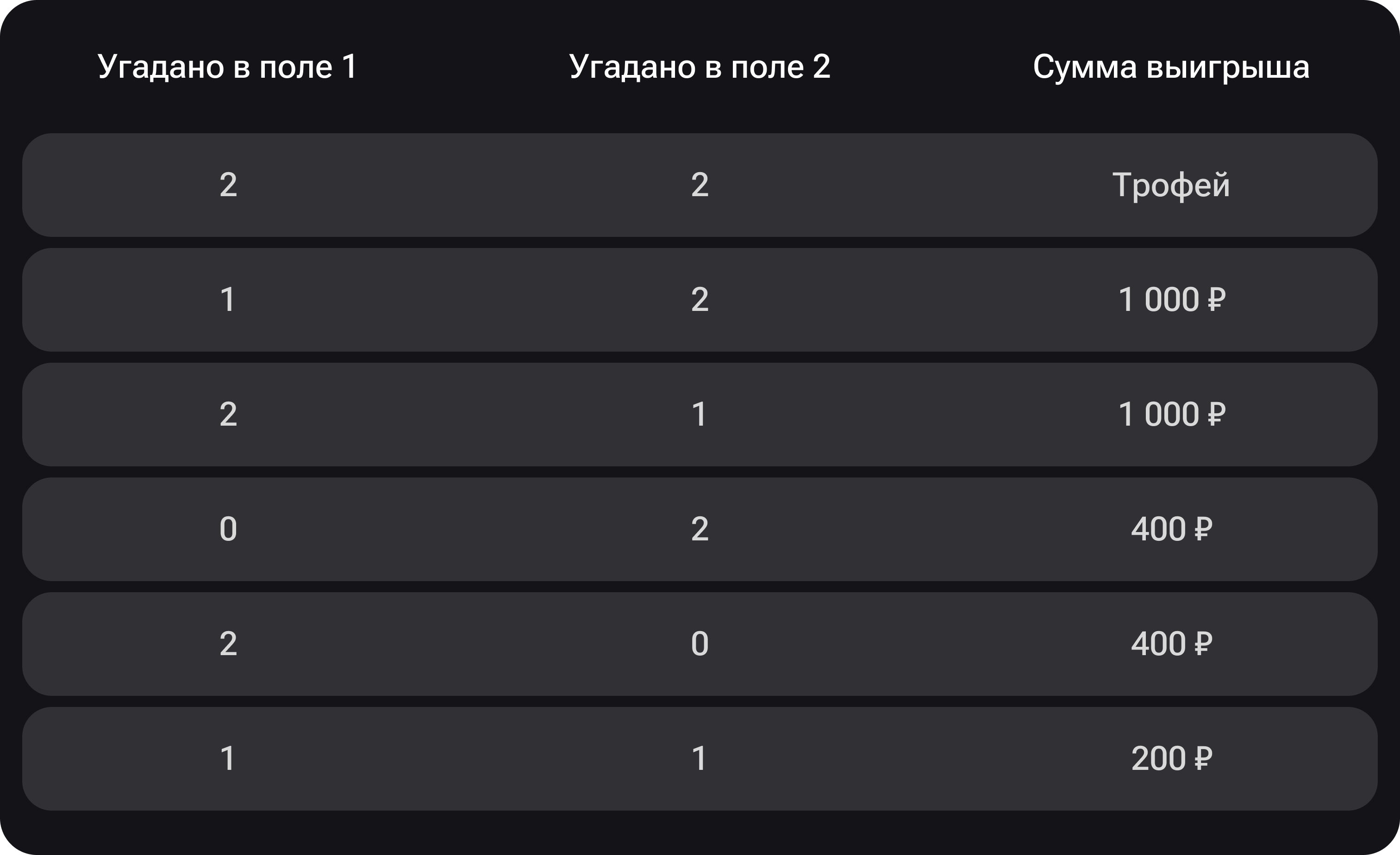 «Охота. Вызов» и «Проще, чем дважды два» являются равнозначными коммерческими наименованиями лотереи «ВГЛ 4 Спорт», алгоритм определения выигрышей № 5.