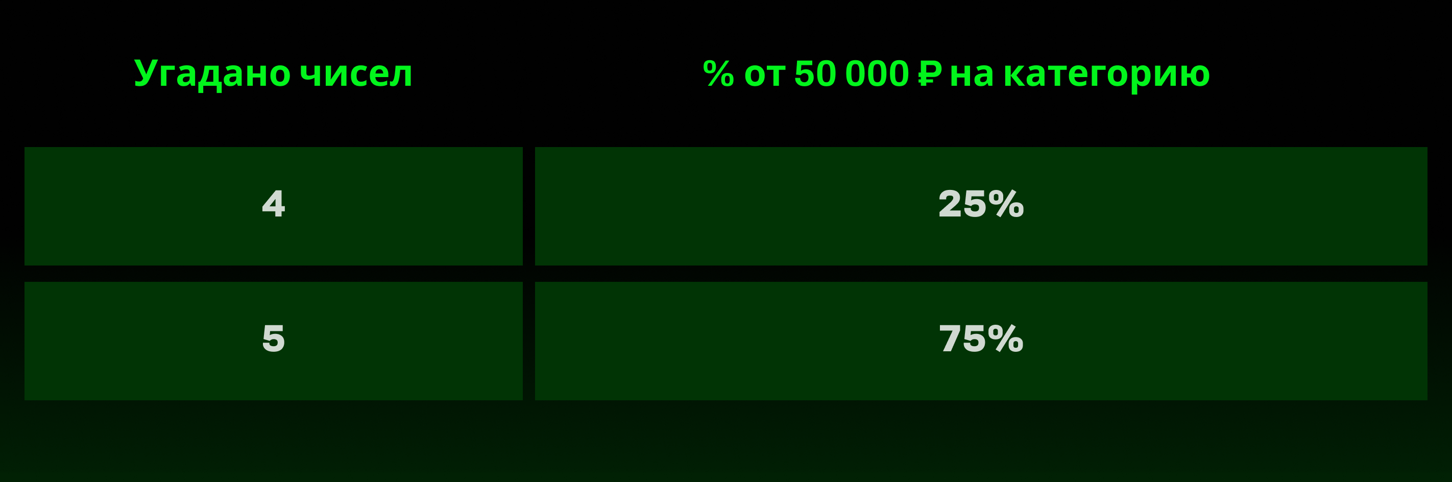 Подробнее о распределении по категориям выигрышей смотрите в таблице.
