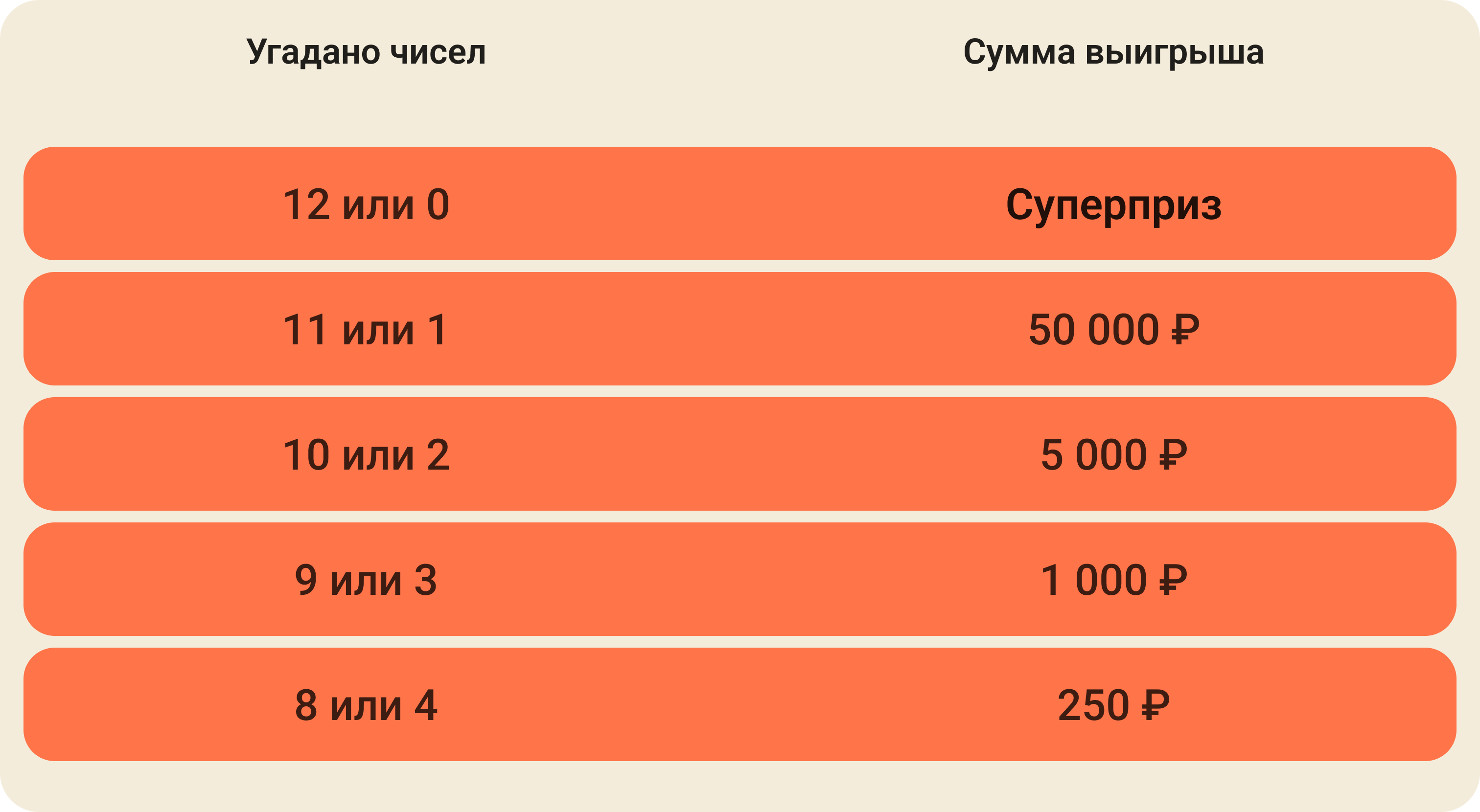 «Забава от Русского лото», «Всё или ничего» и «Карта удачи» являются равнозначными коммерческими наименованиями лотереи «ВГТЛ-2», алгоритм определения выигрышей № 9.