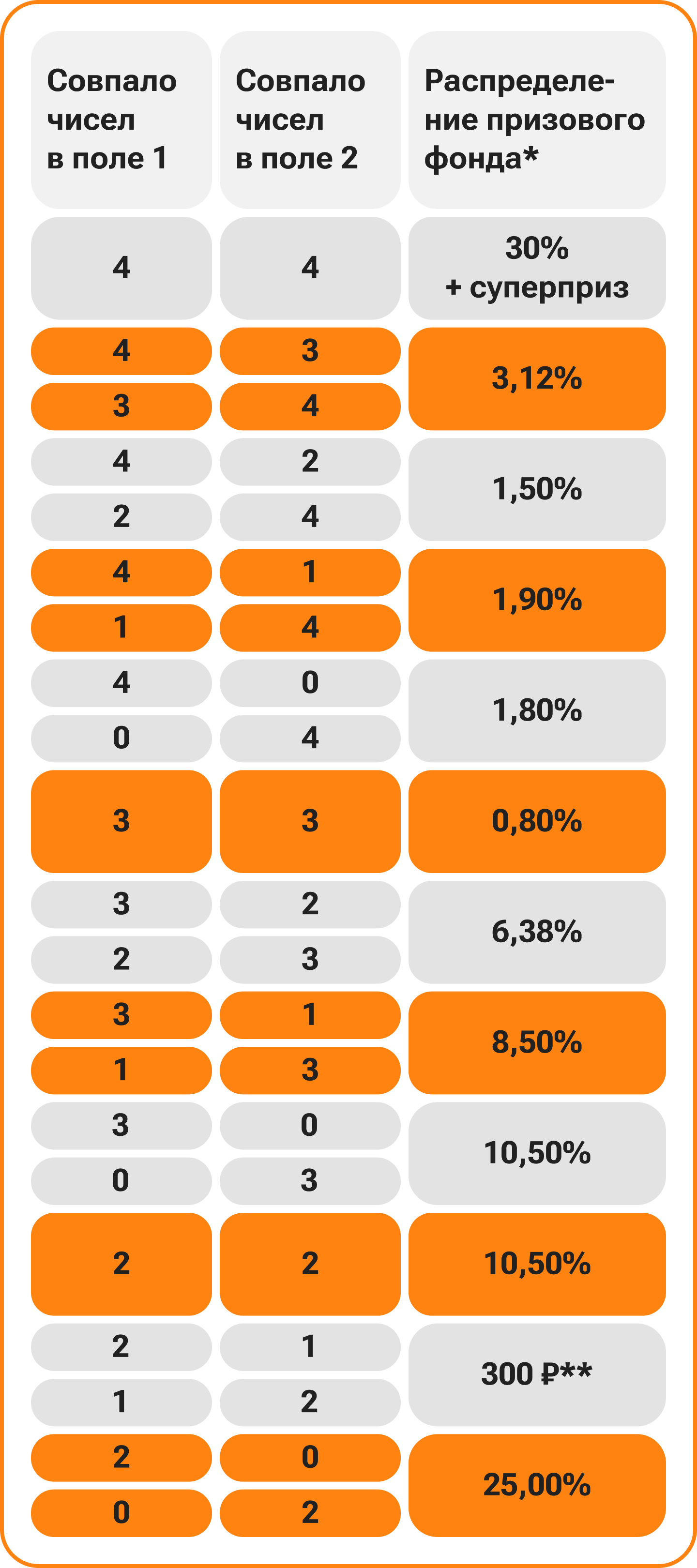 С 12:07 мск 17 декабря цена билета в «Спортлото «4 из 20» будет ниже — от 300 ₽. Изменится и сумма суперприза. Не упустите свой шанс забрать от 10 000 000 ₽.