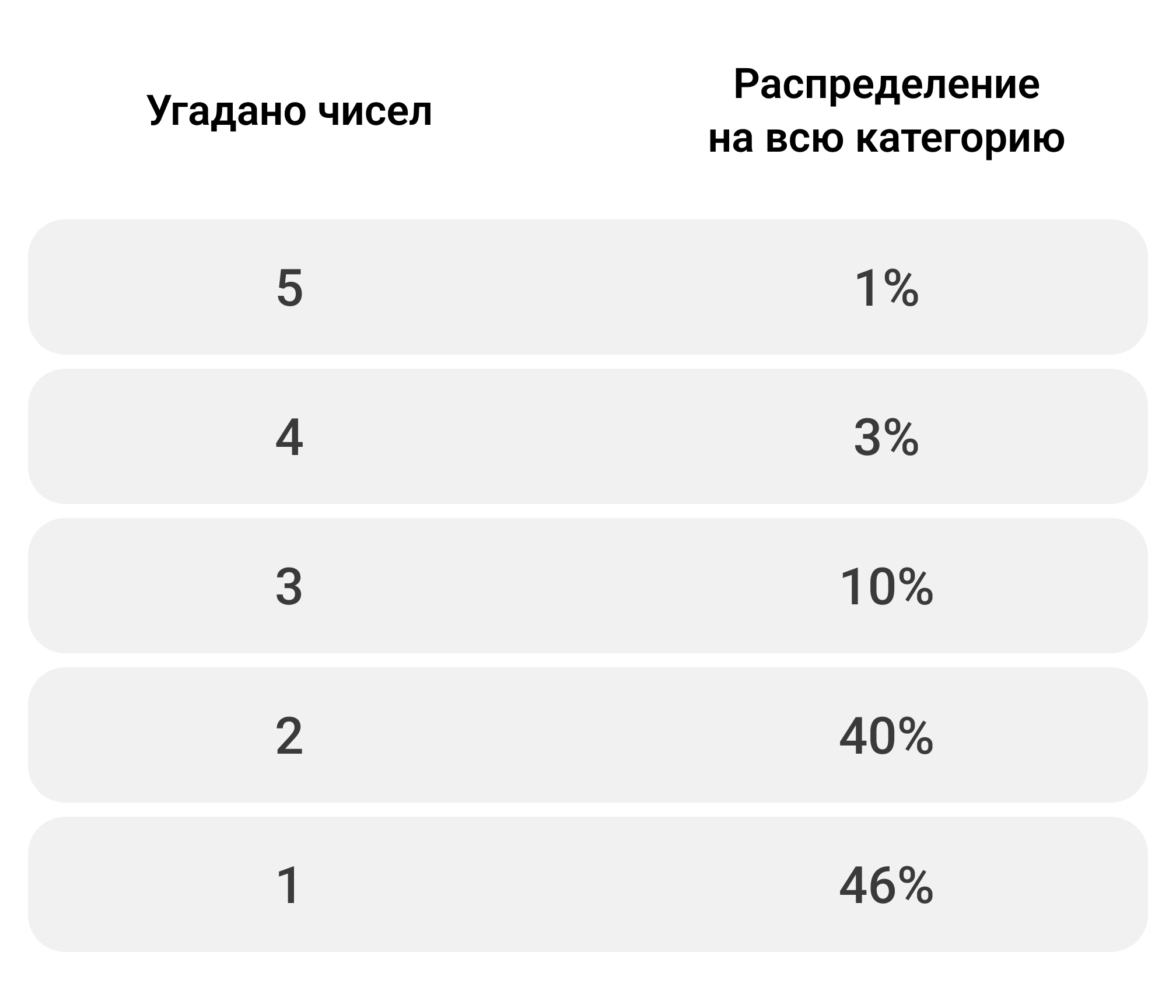 Подробнее о распределении суперприза по категориям выигрышей смотрите в таблице.