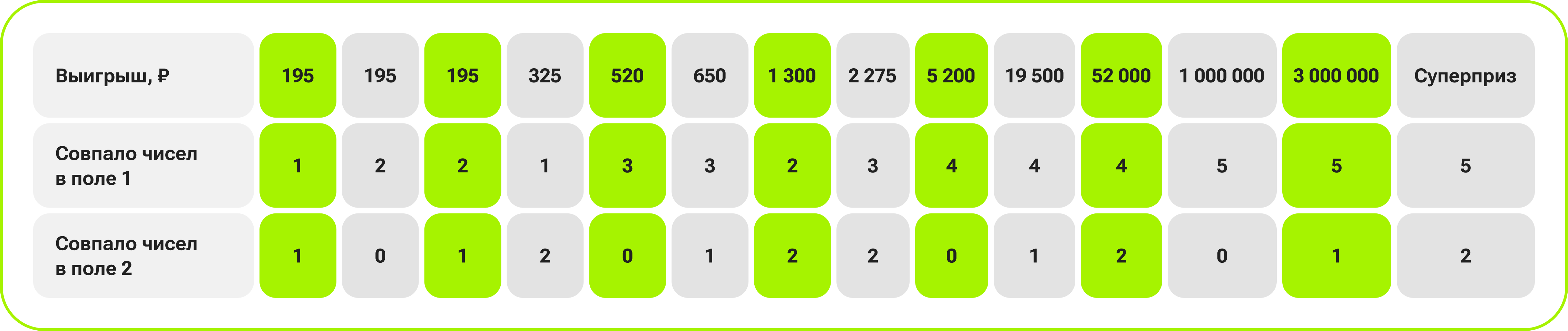 Целая неделя увеличенных выигрышей в «Большом Спортлото»! С 9:30 мск 12 января до 21:30 мск 19 января минимальные выигрыши в 3 раза больше. Покупайте билеты и забирайте от 195 ₽. А если угадаете 7 чисел, станете мультимиллионером. Вперёд!