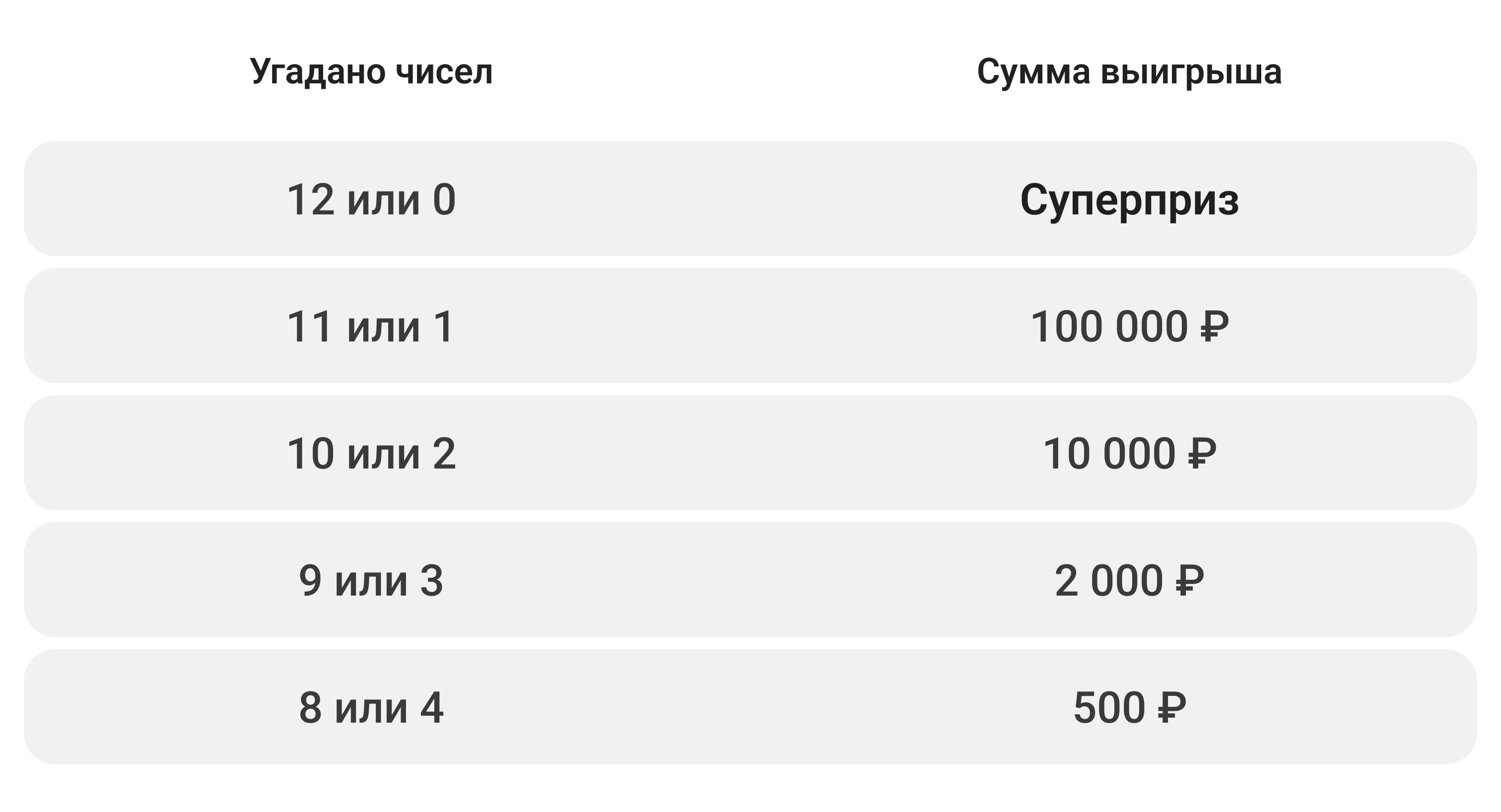 Смотрите в таблице, как изменятся выигрыши.