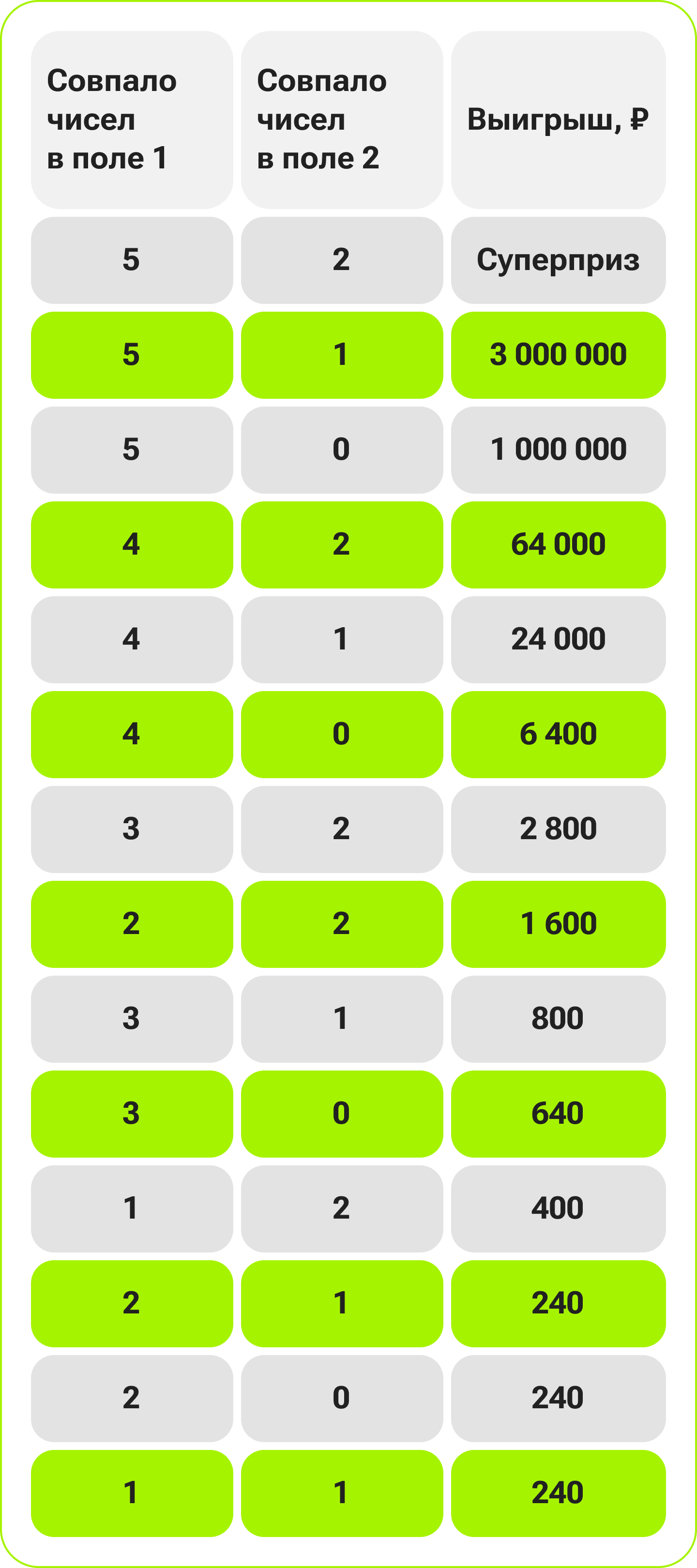 Подробнее об изменении выигрышей смотрите в таблице.